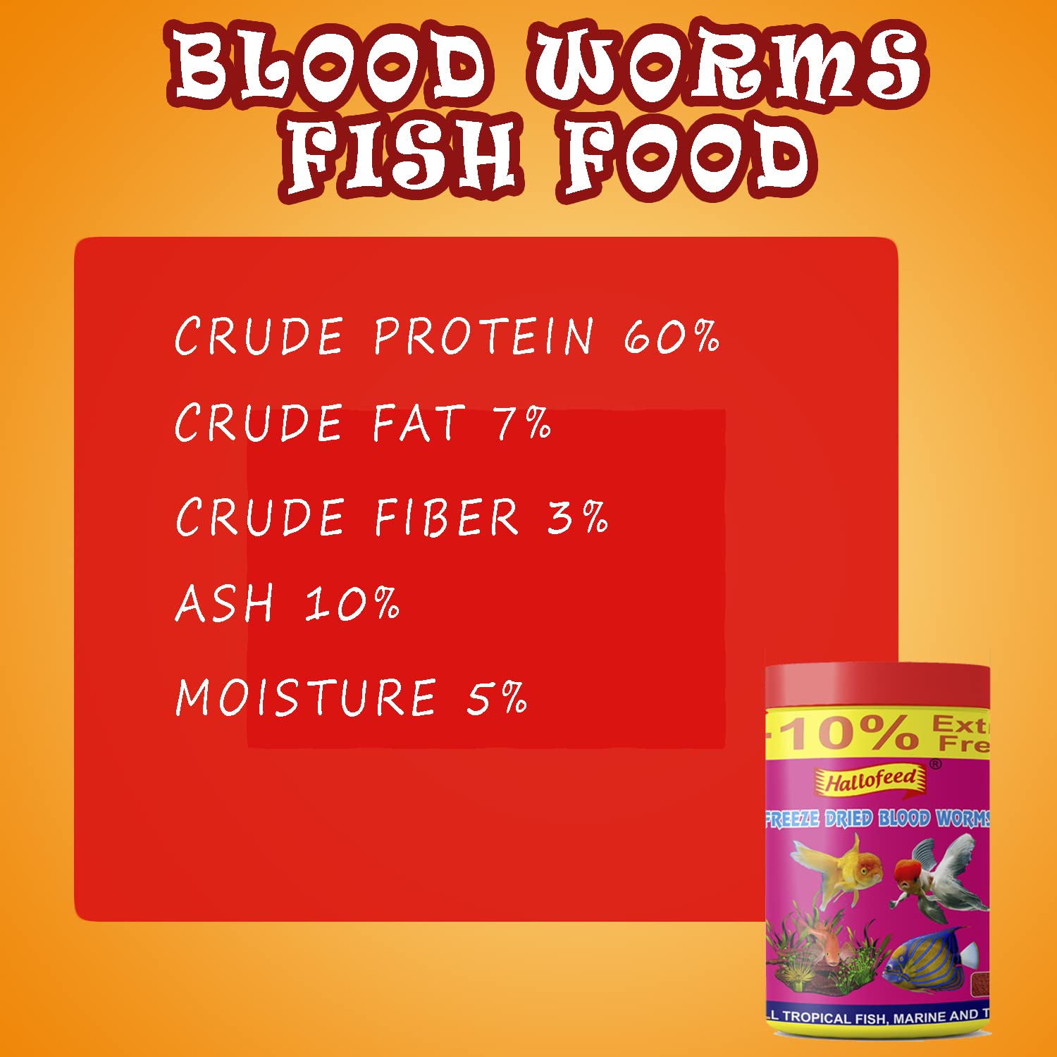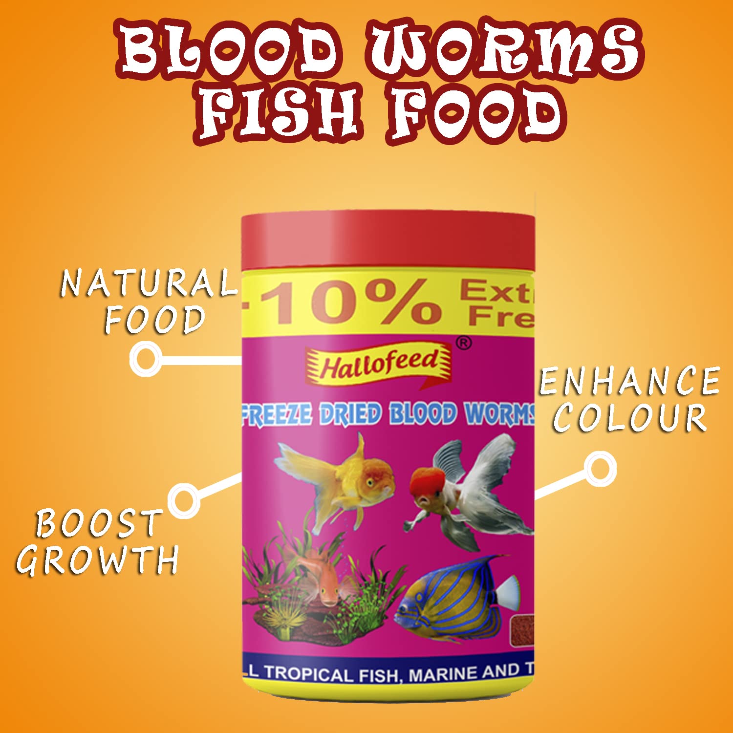 Hallofeed Freeze Dried Blood Worms| Premium Fish Food | High Protein Treat for Betta, Flowerhorn, Goldfish & Tropical Fish